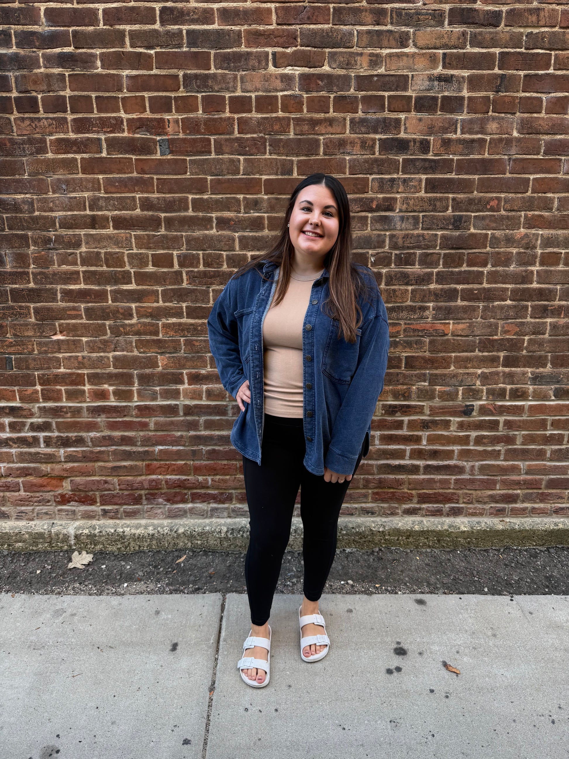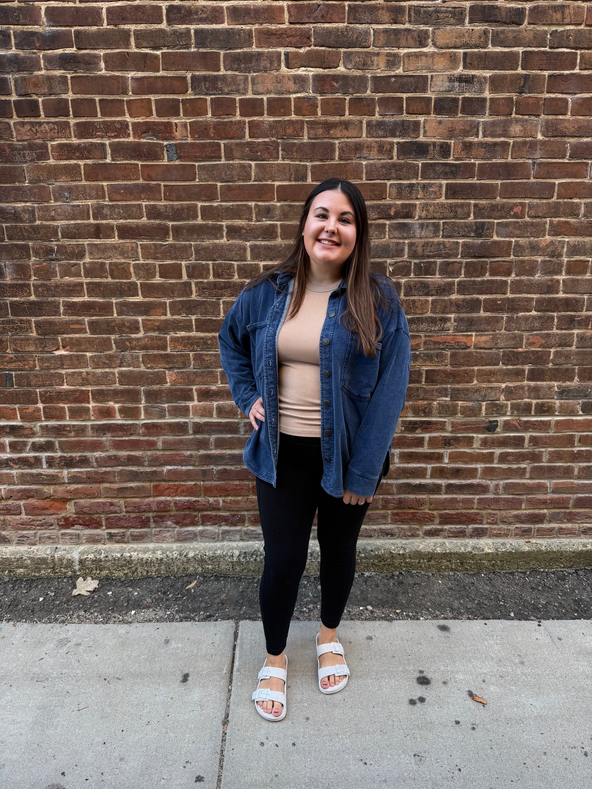 The All Day Knit Denim Jacket in Indigo combines the comfort of knit fabric with the timeless appeal of denim. Crafted from a soft-knit French terry blend of 85% cotton and 15% polyester, it offers a relaxed fit and a vintage-inspired, look. Featuring a classic collar, button-front closure, and a convenient patch pocket, this jacket is designed for everyday wear. Each piece is uniquely handcrafted, ensuring no two jackets are identical. Easy to care for, it’s machine washable on a gentle cycle—hang to dry for best results. A versatile staple for any wardrobe.