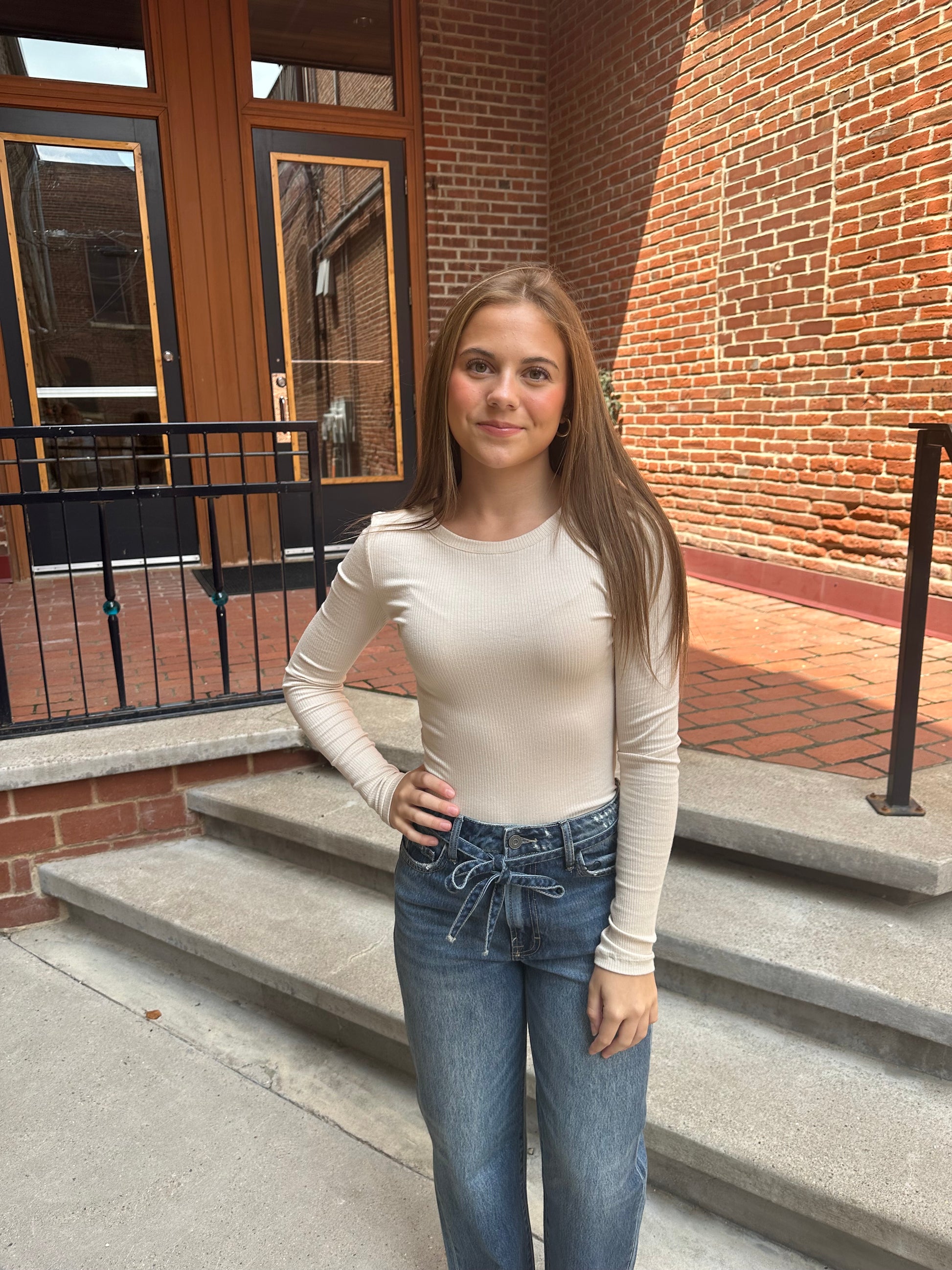 Expertly crafted from a luxurious blend of 96% rayon and 4% spandex, the Brittany Long Sleeve in Rainy Day offers superior comfort and flexibility. The 4x2 rib fabric adds a touch of texture to this timeless staple. Perfect for any occasion.