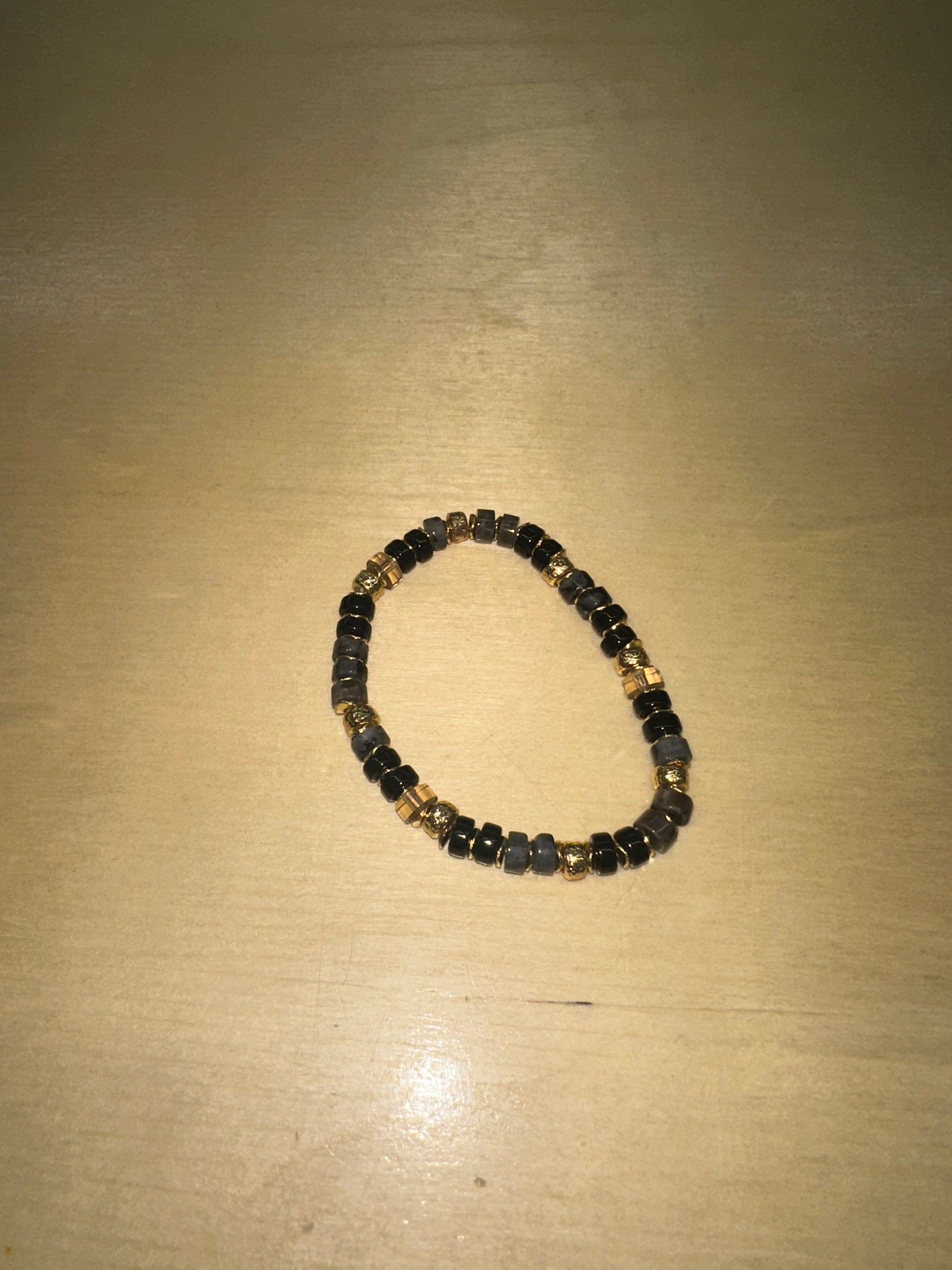 Elevate your accessory collection with this expertly crafted Glass Beaded Bracelet in black, featuring elegant gold details. Designed in the USA, it meets strict lead and nickel compliance standards, ensuring both style and safety. Its refined color palette and quality craftsmanship make it a versatile piece suitable for sophisticated, everyday wear.