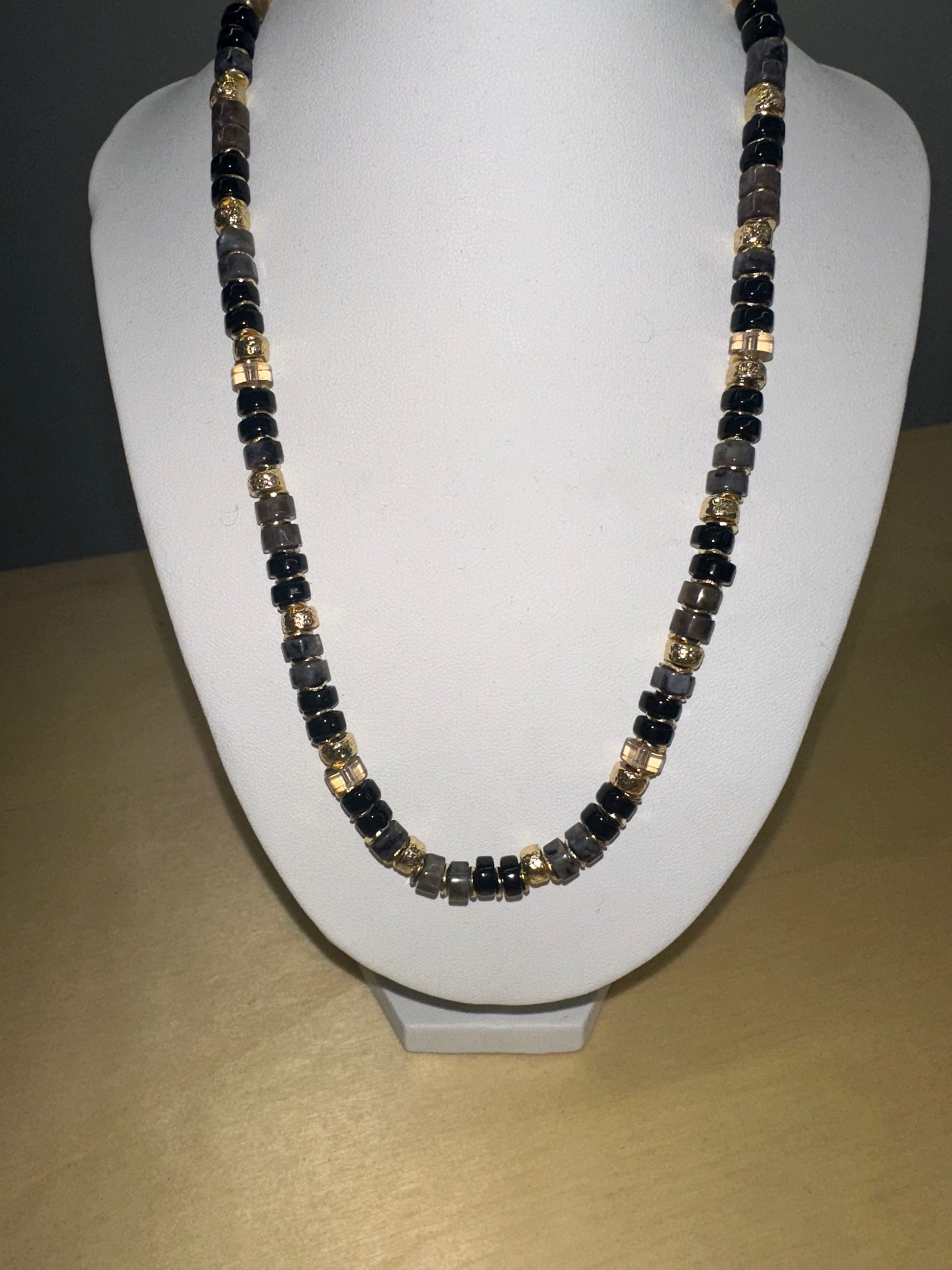Elevate your accessory collection with this expertly crafted Glass Beaded Necklace in black, featuring elegant gold details. Designed in the USA, it meets strict lead and nickel compliance standards, ensuring both style and safety. Its refined color palette and quality craftsmanship make it a versatile piece suitable for sophisticated, everyday wear.