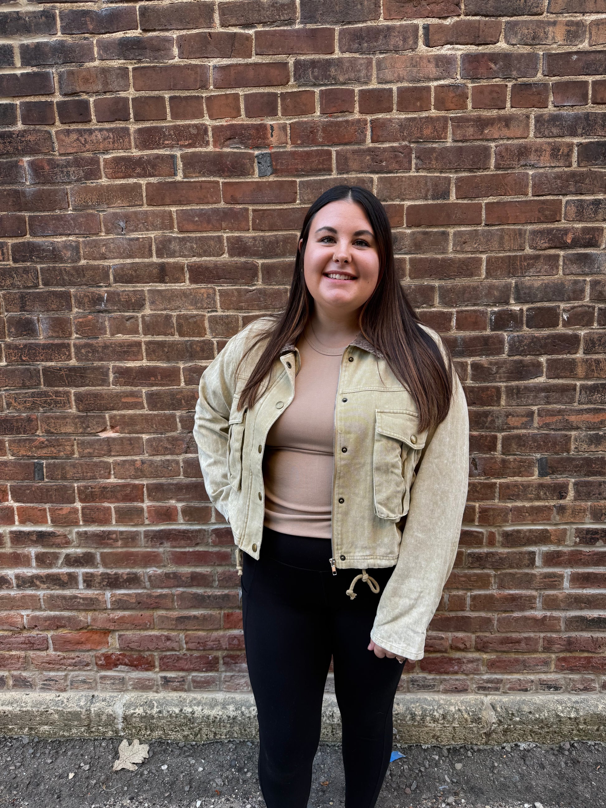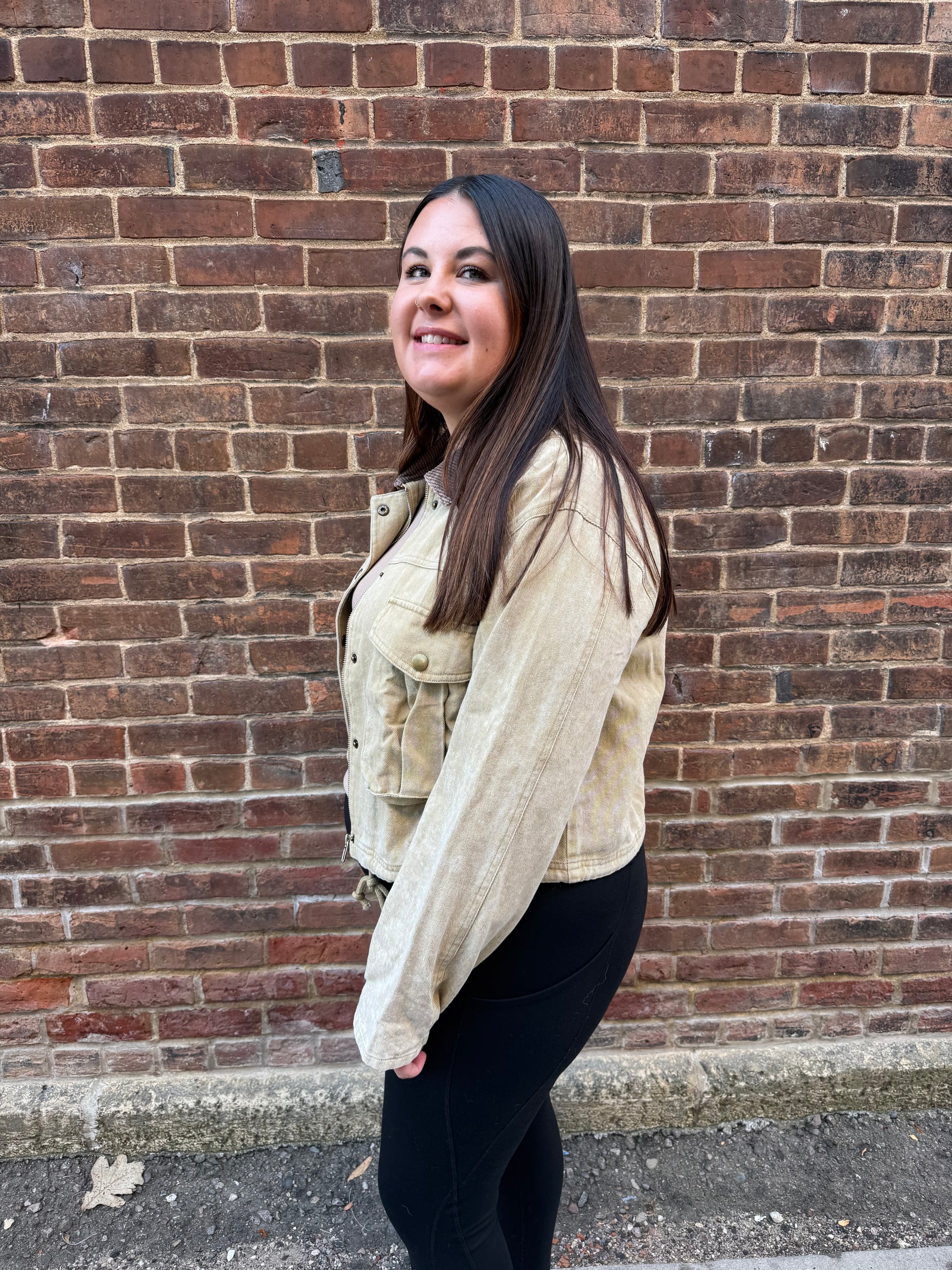 The Kara Corduroy Collar Contrast Twill Crop Jacket combines timeless corduroy detail with durable twill fabric, offering 100% cotton comfort and breathability. Its cropped silhouette adds a modern edge while the contrasting collar delivers subtle sophistication. Ideal for layering, this jacket balances style and practicality for year-round wear.