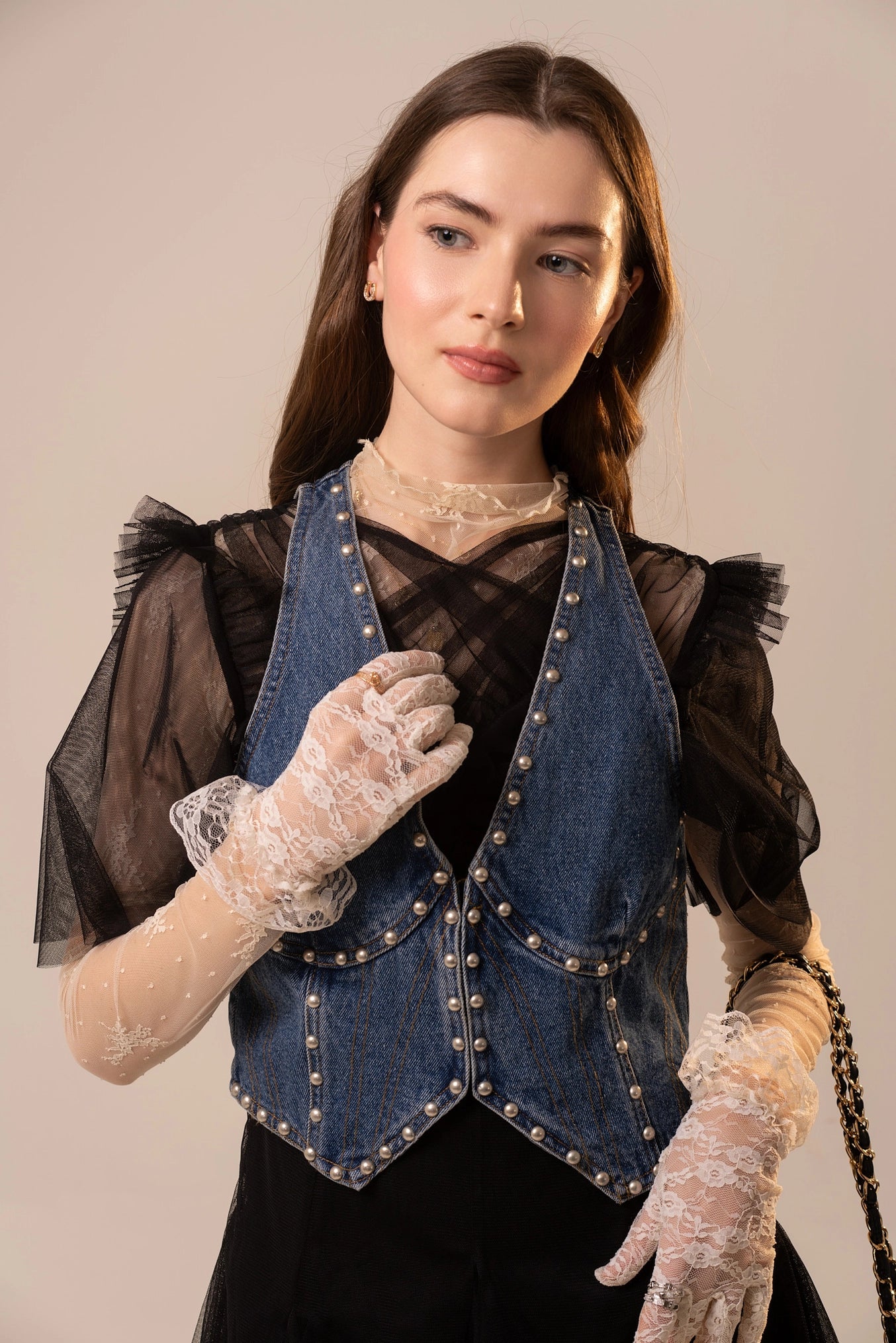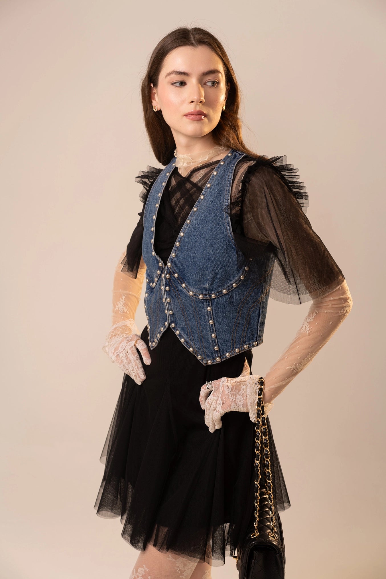 Elevate your denim collection with the Toni Metal Stud Denim Bustier Top, a contemporary take on structured silhouettes. This cropped bustier features a flattering plunge neckline and precision contour seaming that creates definition and shape. Pearl-style metal studs add an edgy-luxe detail, while the front hook closure ensures a secure, polished fit. Crafted from 100% cotton, it delivers breathable comfort without compromising on structure. Perfect layered under sheer pieces or styled solo for statement-making versatility.